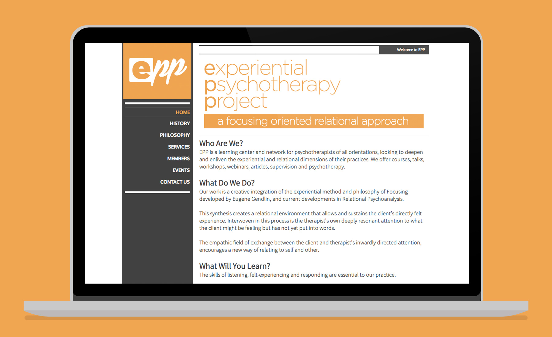 EPP (Experiential Psychotherapy Project) is a New York City based learning and teaching association committed to the development of an in-depth and versatile model of psychotherapy. It is a learning center and network for psychotherapists of all orientations, looking to deepen and enliven the experiential and relational dimensions of their practices. Thier website was designed to be a basic informational site, with a quick naviagtion bar to access the information and allow easy usability and navigation for their target crowd. The site has a custom CMS so the client is able to update the content on all their pages.