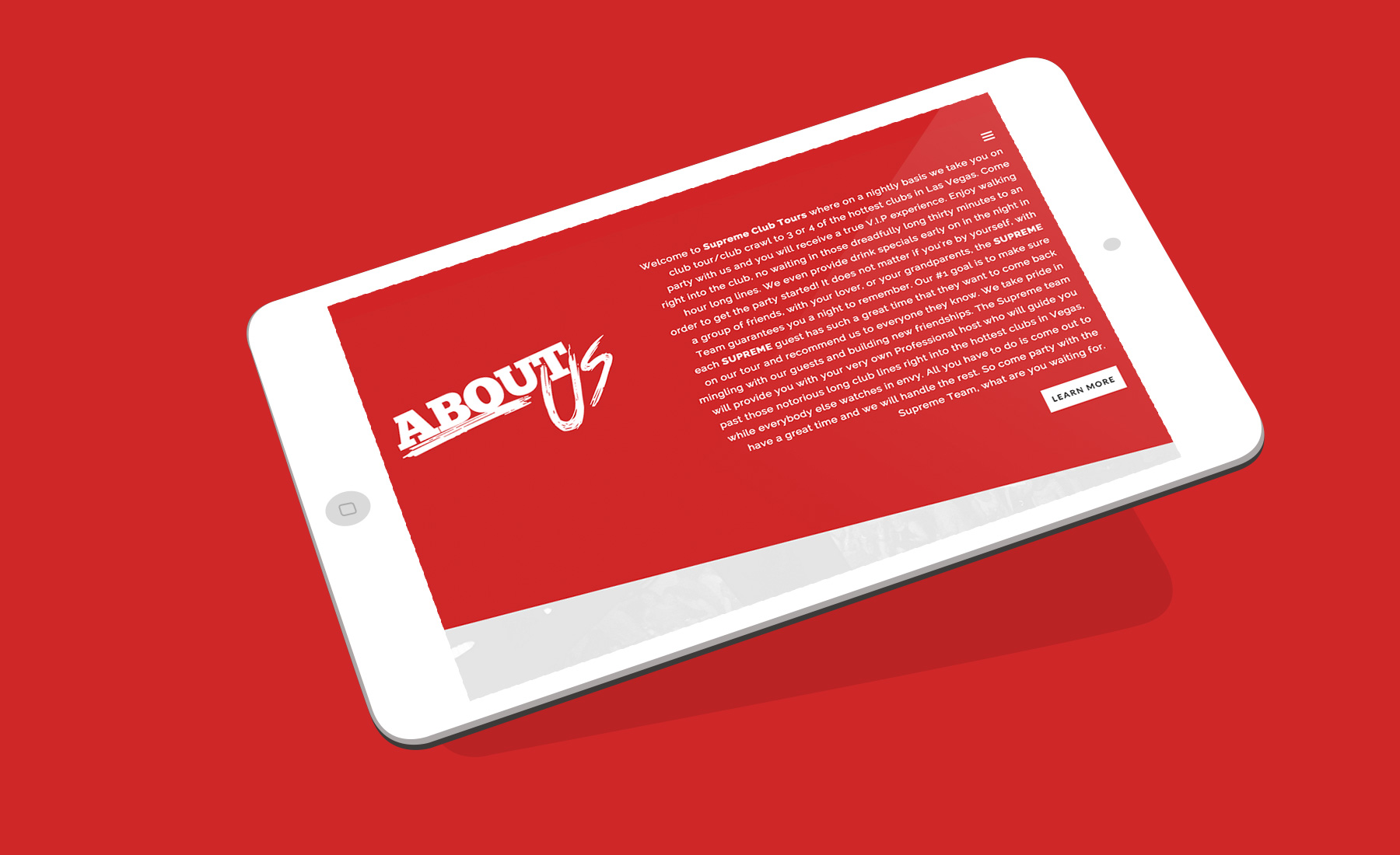 Supreme Club Tours is a Las Vegas party service. The website allows user to view event dates, purchase tickets, subscribe to updates from newsletters, and learn more about the company. All content is managed by the client through a Content Management System.